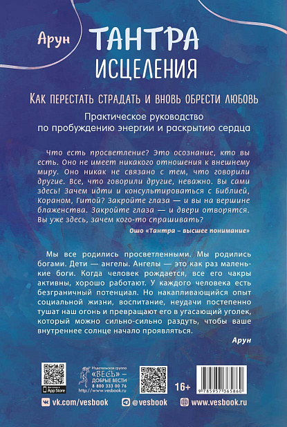 Тантра Исцеления — это живое свидетельство того, как великая боль может стать источником силы. В мире, где многие привыкли подавлять чувства и жить в режиме «автопилота», путь Аруна показывает: даже после самых тяжелых утрат и жизненных катастроф сердце способно пробудиться, а тело — вновь научиться танцевать. Мы решили издать эту книгу, потому что верим: инструменты тантры необходимы современному человеку, чтобы сбросить оковы иллюзий, исцелить внутренние раны и вернуть себе право на радость. Мы хотим, чтобы как можно больше людей смогли восстановить контакт с собой, раскрыть свое сердце и обрести целостность.