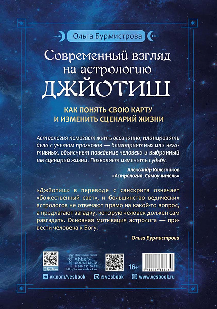Книга предлагает читателю освоить фундамент современной ведической астрологии и научиться самостоятельно составлять карту рождения. Этот инструмент позволяет детально проанализировать потенциал личности: от скрытых талантов и сильных сторон до профессиональных склонностей и зон риска в вопросах здоровья.