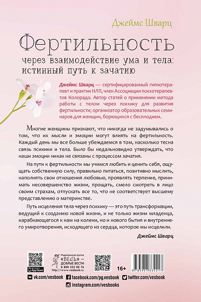 Джеймс Шварц большую часть жизни посвятил изучению проблемы бесплодия неясного генеза, он помог многим женщинам вернуть способность к зачатию. В этой книге он делится результатами своих научных исследований в области фертильности, опытом работы в качестве психо- и гипнотерапевта и предлагает практические упражнения для избавления от эмоциональных и ментальных проблем, блокирующих наступление беременности. Автор даёт надежду, что диагноз бесплодие — это не приговор, а лишь временная остановка на пути женщины к желанному материнству. Мы надеемся, что женщины и семьи, мечтающие о ребёнке, обретут долгожданное счастье.