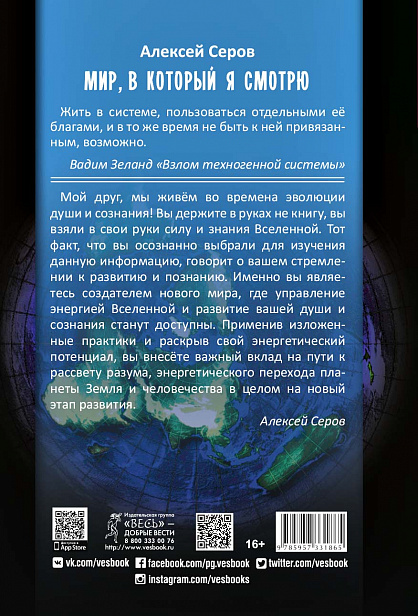 «Система поработила сознание людей достаточно сильно, и, к большому сожалению, вырвать их из мира эгрегоров в этой жизни просто невозможно. Да и ни к чему — каждый волен идти по своему пути, это его право. А ваше право — двигаться по своему пути и мощью энергетики освещать мир вокруг себя. Ваше право — осознанно, в гармонии с душой и разумом управлять своим миром, показывая другим, что можно жить иначе. Так вы будете вдохновлять людей становиться на путь развития и познания себя.