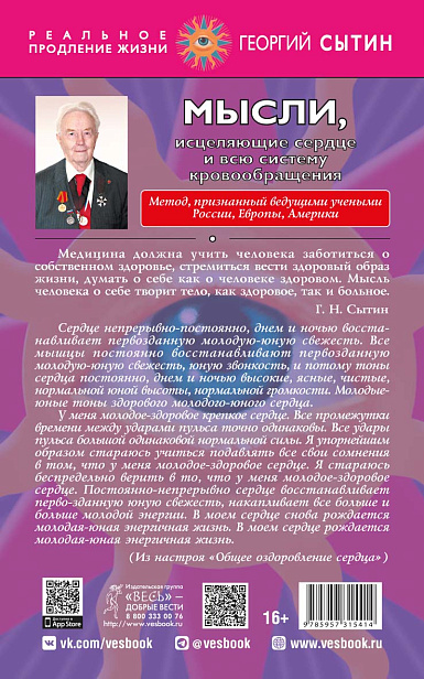 Георгий Николаевич Сытин — ученый с мировым именем. Более 70 лет он проводил научные исследования человеческих возможностей и создавал инструменты, с помощью которых человек может жить без старения долгие годы! Каждый может прекратить старение, высвободить огромную жизненную силу, огромную энергию развития. Для этого необходимо активизировать, физиологически усиливать постоянную реакцию исцеления-омоложения, которая запрограммирована самой природой, запрограммирована Богом Всемогущим в каждом человеке. В своих публикациях, докладах и лекциях академик Сытин рассказывал, как работать с настроями, как усиливать мысли, на что обратить особое внимание, как произносить слова.