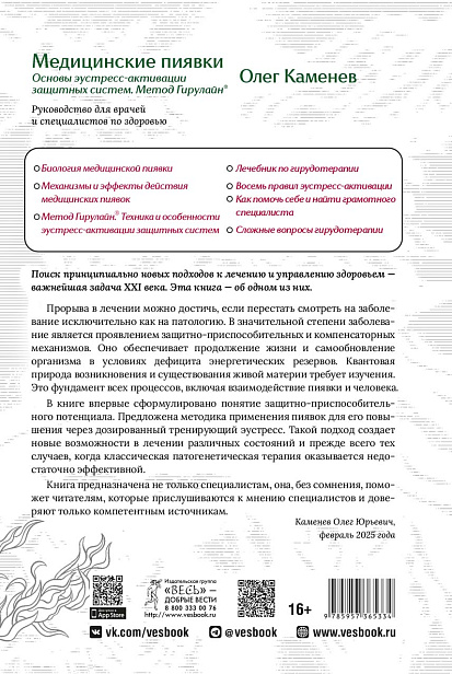 Книга посвящена инновационному подходу в области гирудотерапии —Гирулайн® метода эустресс-активации защитных систем.предлагает новую концепцию применения пиявок, направленную на повышение адаптивных возможностей организма и стимуляцию естественных механизмов регенерации.
