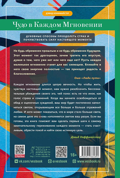 Книга «Чудо в каждом мгновении» построена по принципу изнутри вовне. Сначала Дэвид Хоффайстер предлагает проанализировать и проработать свои внутренние установки. А затем сознание, как кинопроектор, начнет проецировать их на окружающий мир. Сперва улучшаться ваши отношения с другими людьми, наполнившись искренностью и любовью. Затем вы начнете иначе воспринимать проблемы со здоровьем и другие испытания, которые посылает вам жизнь, увидев их скрытый смысл и научившись извлекать из них ценные уроки. И в конце концов убедитесь в своей тесной связи со всей вселенной и поймете механизм, по которому в этом мире происходят чудеса.
