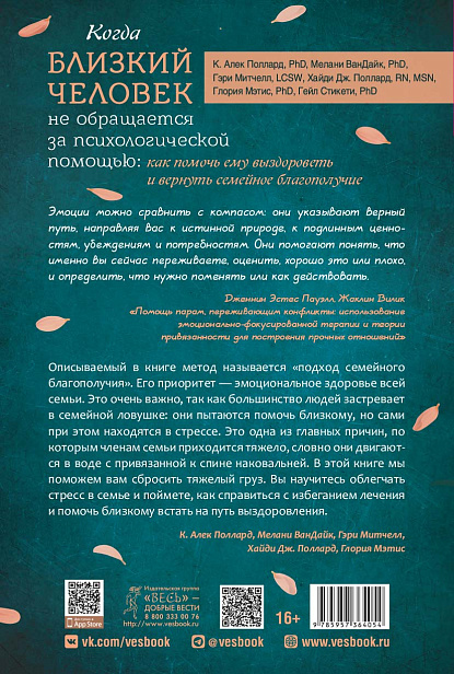 «Не получится помочь тому, кто не хочет этого…но всегда можно помочь тому, кто пришел с таким запросом!» – уверены авторы книги. Команда специалистов – практикующих психотерапевтов и когнитивных исследователей – во главе с Алеком Поллардом разработала психотерапевтический метод под названием подход семейного благополучия. Приоритет этого подхода — эмоциональное здоровье всей семьи.