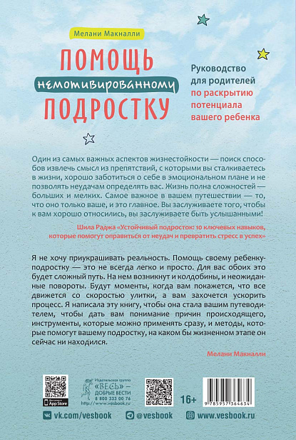 Мелани предлагает пути развития трех ключевых составляющих мотивации: внутреннего побуждения, настойчивости и постановки целей. Стратегии, с которыми знакомится читатель, развивают навык целеполагания, взращивают любопытство и автономию подростка.