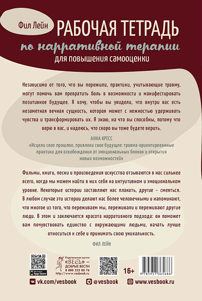 Рабочая тетрадь предлагает вам стать исследователями собственного жизненного нарратива, или, говоря простыми словами, рассказа о себе. Автор, психотерапевт Фил Лейнпомогает читателям осознать, как их личные истории влияют на самоощущение и самооценку. Книга учит анализировать существующие нарративы, выявлять негативные установки и социальные стереотипы, которые влияют на нас. Во время выполнения заданий вы начнете формировать новые позитивные нарративы для повышения уверенности в себе, обретете мотивацию к личностному развитию. Основная цель — создание обновленного, вдохновляющего рассказа о собственной жизни, наполненного добротой, поддержкой и уважением к себе.