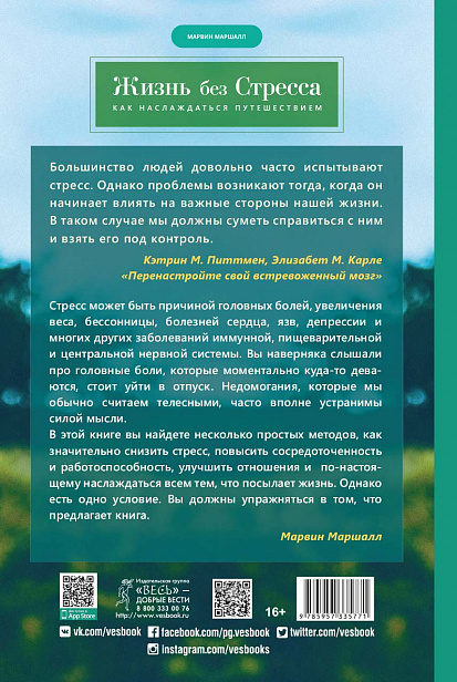 Марвин Маршалл просто и с юмором объясняет, что делает стресс с нашими умом и телом. И советует, с какого конца нужно взяться за дело, чтобы бережно размотать клубок физических, эмоциональных и моральных проблем, которые могут казаться неразрешимыми. Автор предлагает эффективную программу разнообразных упражнений — от актерских техник до визуализации и смехотерапии. Практикуясь в новом взгляде на себя и окружающую действительность, вы не только повысите свою самооценку и продуктивность, но и сможете значительно улучшить свое здоровье.