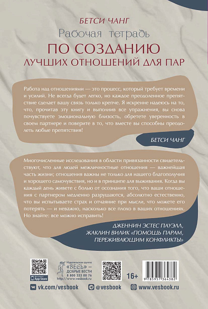 Рабочая тетрадь от клинического психолога Бетси Чанг предназначена для пар, испытывающих трудности в отношениях.